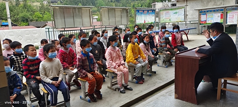 新华卫视讯(通讯员 尹邦德 肖丽蓉)4月21日上午,县人大代表、桐山乡市坪村支部书记刘先清带领村支两委来到市坪村教学点,以县委书记吴韬同志在乡调研社会治理六项重点工作暨“六零”村创建座谈会精神为指引,结合本村村情实际,用通俗易懂、比喻恰当的话语给全体师生上了一堂生动的教育课。